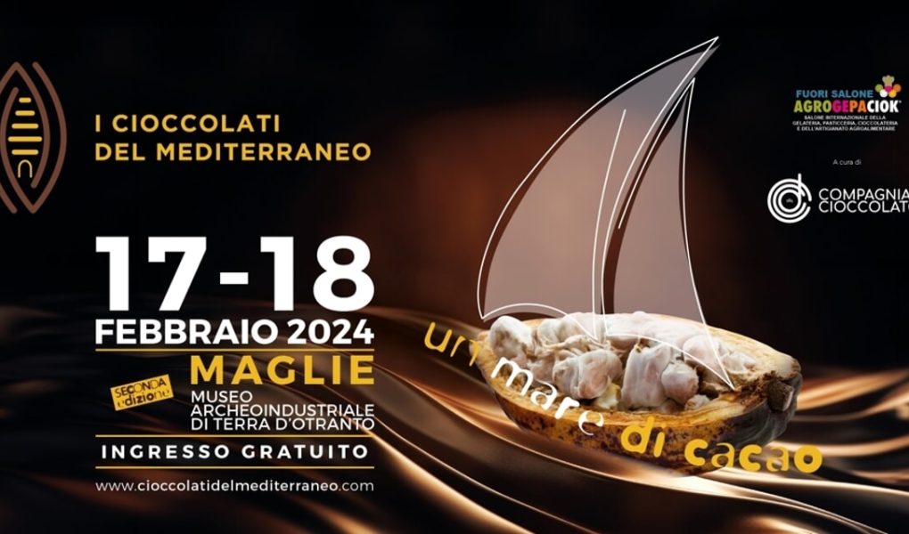 MAGLIE – Sabato 17 febbraio e domenica 18 febbraio 2024 si terrà la seconda edizione del Salone “I Cioccolati del Mediterraneo”, presso il Museo Archeoindustriale di Terra d’Otranto nella città di Maglie che per la prima volta apre al pubblico. Nato da un’idea della Compagnia del Cioccolato…
